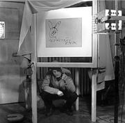 | 11 dec 2013 12:12 | Zwart Barnstetter 1952.jpeg (bestand) | 65 kB | Peter Zwart schildert het behang op de set van ''Herexamen voor Barnstetter'' augustus 1952. Foto door Philips Telecom Hilversum, nummer T241-13. | 1 | |