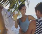 Met Bacardi is het altijd feest: jonge vrouwen en mannen dansen en maken muziek op een tropisch strand, met een glas rum binnen handbereik.