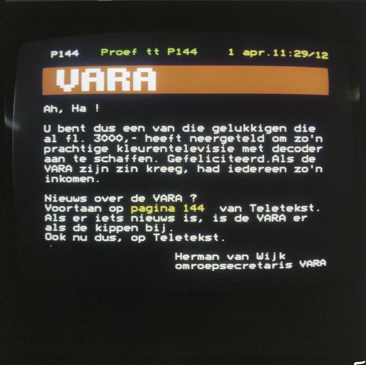Teletekstpagina van 1 april 1980 (bron: fotocollectie Beeld en Geluid)
