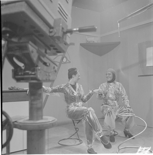 Werkfoto van De Toverspiegel met Hetty Blok en Ad Hooykaas in Studio Irene. 2 oktober 1951. Zendgemachtigde NTS. Archief Beeld en Geluid, catalogusnummer 511N, fotonummer 6.