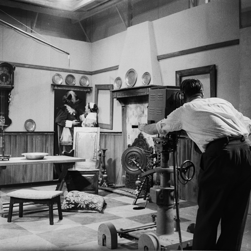 Werkopname van De Toverspiegel, met Ank van der Moer en Johan de Meester in studio Irene. 2 oktober 1951. Zendgemachtigde NTS. Archief Beeld en Geluid, catalogusnummer 511N, fotonummer 17.
