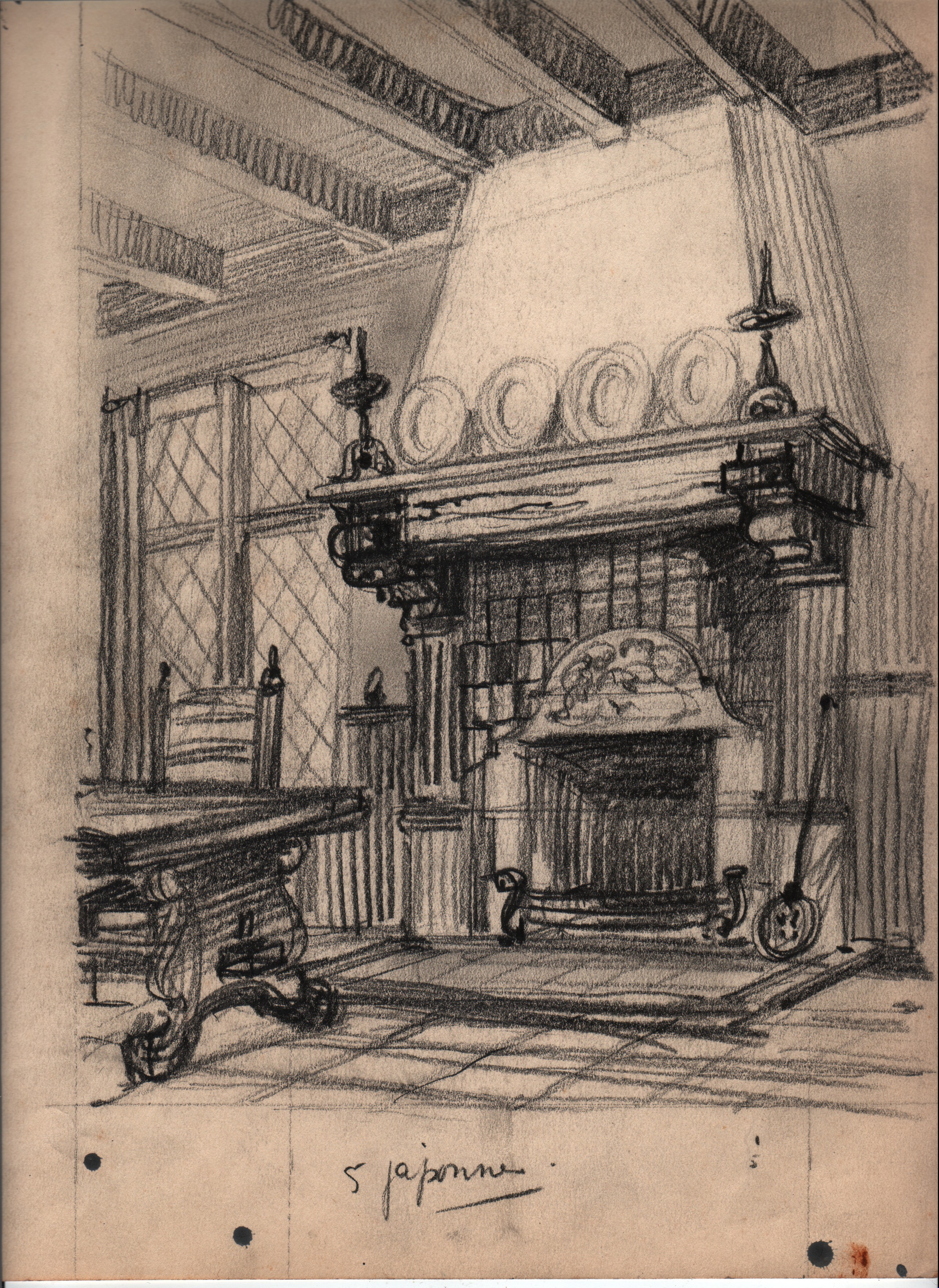 Schets van Peter Zwart voor achterdoek Wintermode 1952 (NCRV, 3-10-1952). Collectie Beeld en Geluid, collectienummer LA2662/Peter Zwart