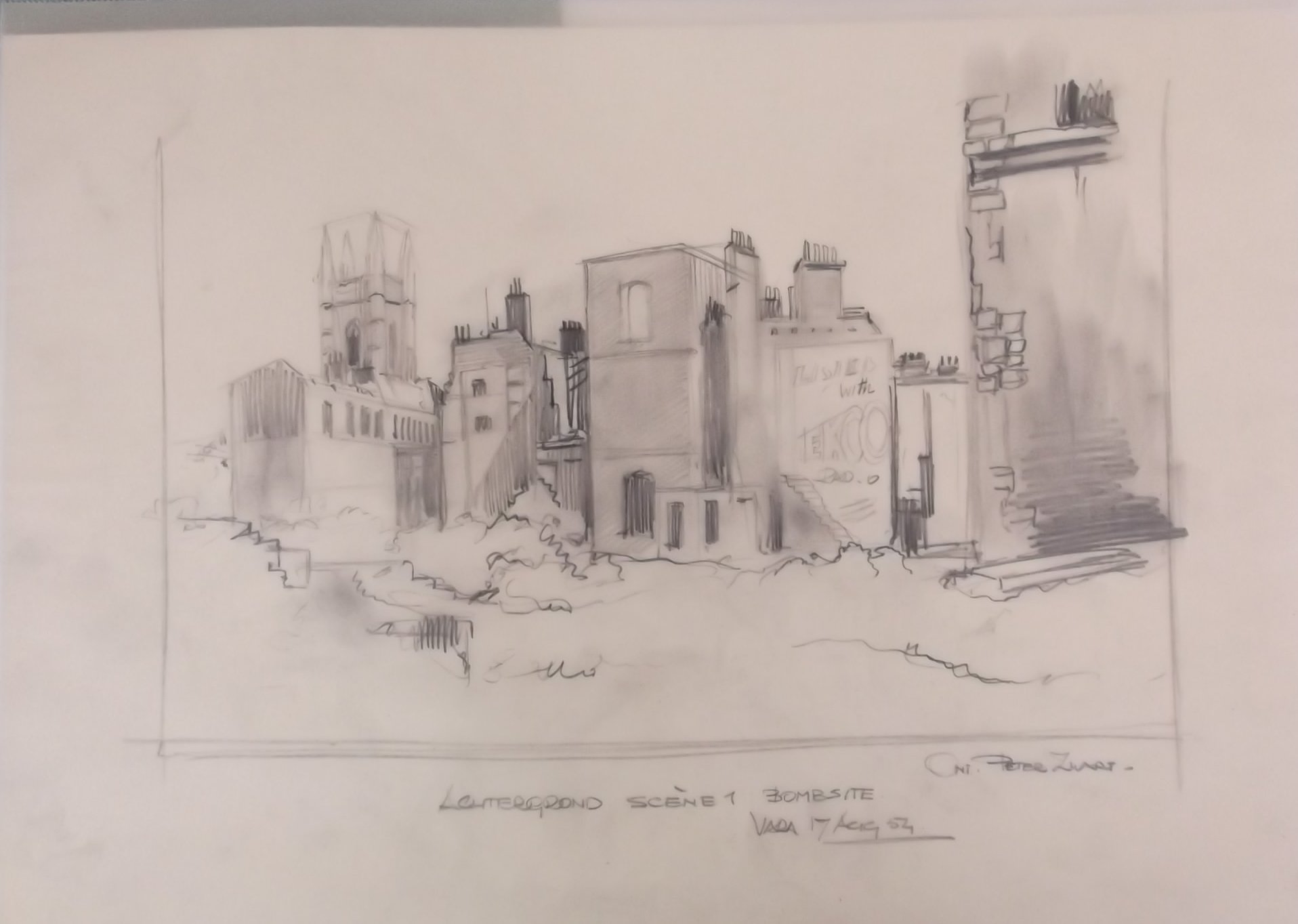 Decorschets van Peter Zwart voor De cel (VARA 17-8-1954). Collectie Beeld en Geluid, collectienummer LA2662/Peter Zwart