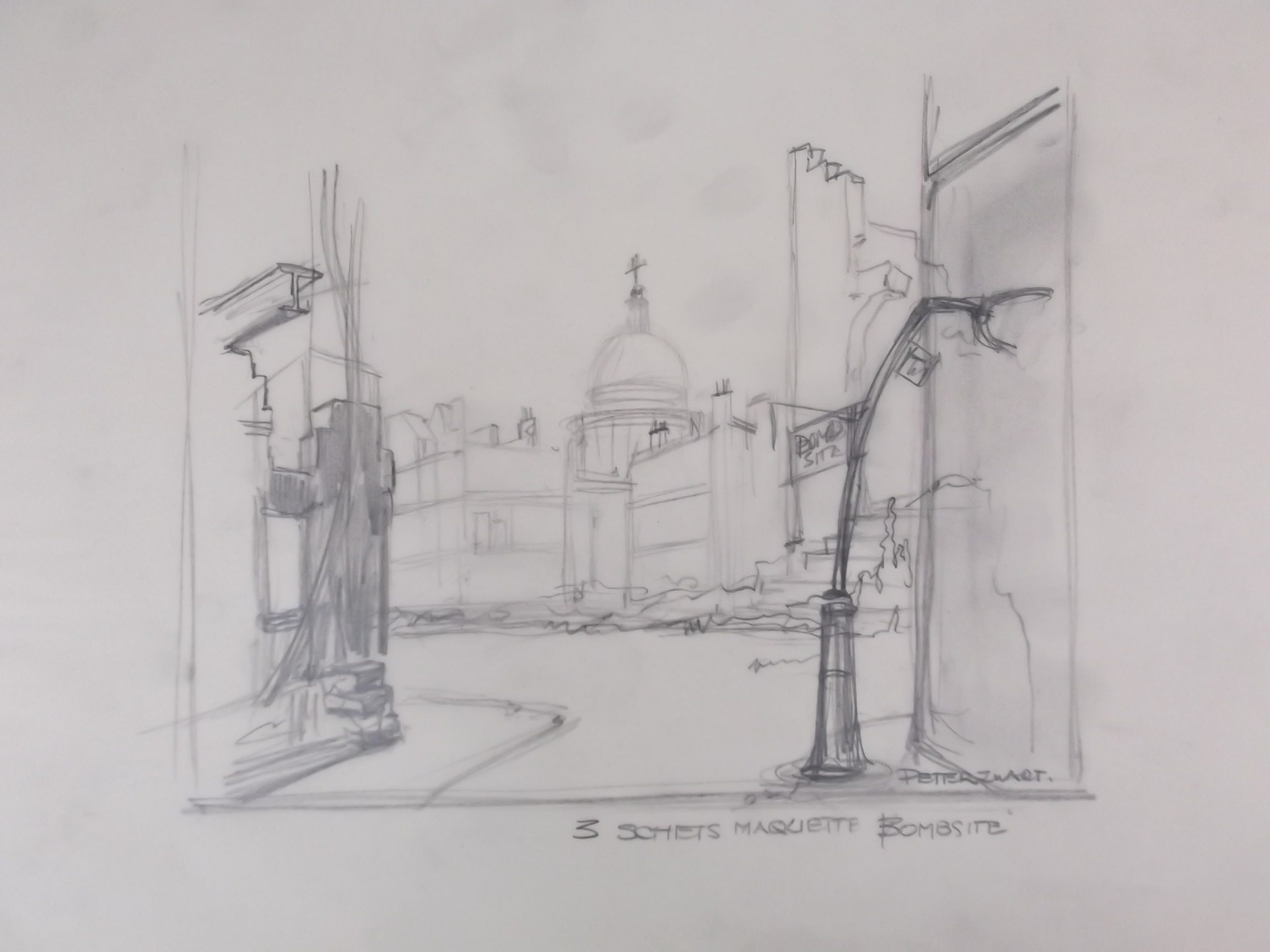Decorschets van Peter Zwart voor De cel (VARA 17-8-1954). Collectie Beeld en Geluid, collectienummer LA2662/Peter Zwart