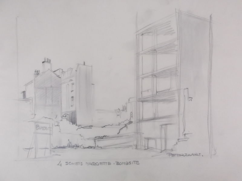 Decorschets van Peter Zwart voor De cel (VARA 17-8-1954). Collectie Beeld en Geluid, collectienummer LA2662/Peter Zwart
