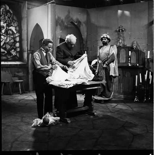Op de set van Opstand in de kribbe (KRO, 1955). Archief Beeld en Geluid, catalogusnummer 552, fotonummer 1