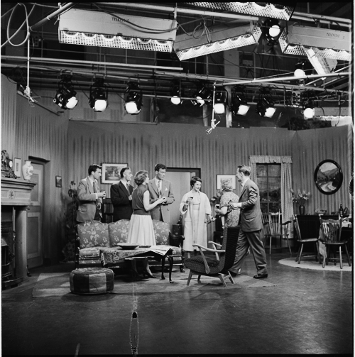 Op de set van Vogel vlieg de wereld in. (AVRO, 1955). Archief Beeld en Geluid, catalogusnummer 5590, fotonummer 17