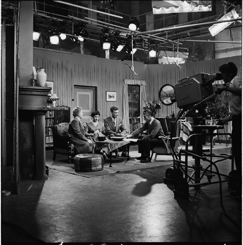 Op de set van Vogel vlieg de wereld in. (AVRO, 1955). Archief Beeld en Geluid, catalogusnummer 5590, fotonummer 4
