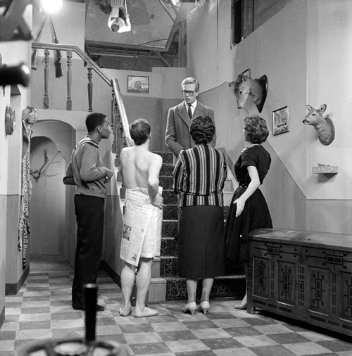 Op de set van Pension Hommeles (VARA, 1957). Archief Beeld en Geluid, catalogusnummer 57233, fotonummer 18