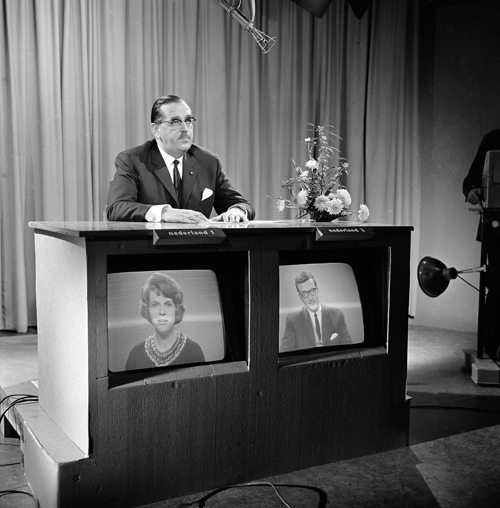NTS voorzitter Emiel Schüttenhelm opent het tweede net. 1 oktober 1964. Zendgemachtigde NTS. Fotograaf van Leeuwen. Archief Beeld en Geluid. Catalogusnummer 6426N, fotonummer 7.