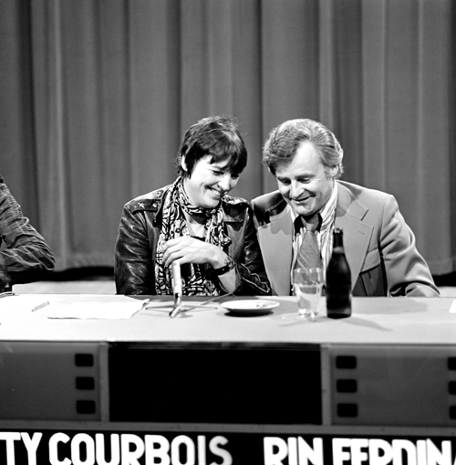 Panelleden Kitty Courbois en Rinus Ferdinandusse in Voor een briefkaart op de eerste rang. 1974. Zendgemachtigde KRO. Archief Beeld en Geluid. Catalogusnummer 74278, fotonummer 3.