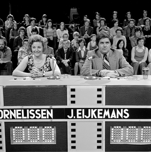 Twee kandidaten in Voor een briefkaart op de eerste rang. 1974. Zendgemachtigde KRO. Archief Beeld en Geluid. Catalogusnummer 74404, fotonummer 24.