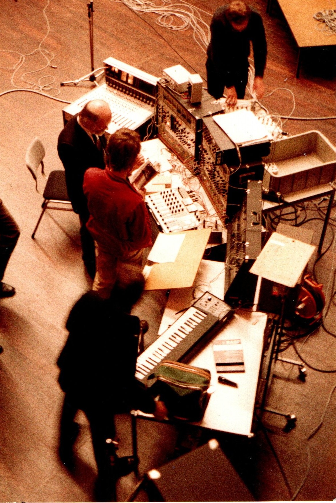 Apparatuur bij concert voor elektronica en orkest. Bron: Fred de Beer