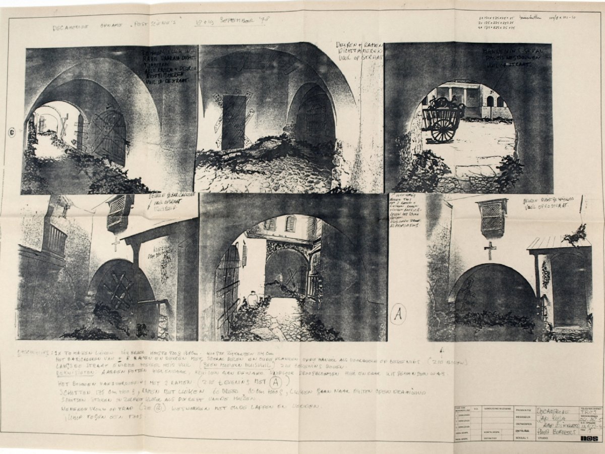 Decorontwerp van Jaap Binnerts en Hub Berkers voor Lessen in liefde (Decamerone) (VARA, 1978). Collectie Beeld en Geluid, collectie nummer LA2753, schenking van Anneke Hoog Antink
