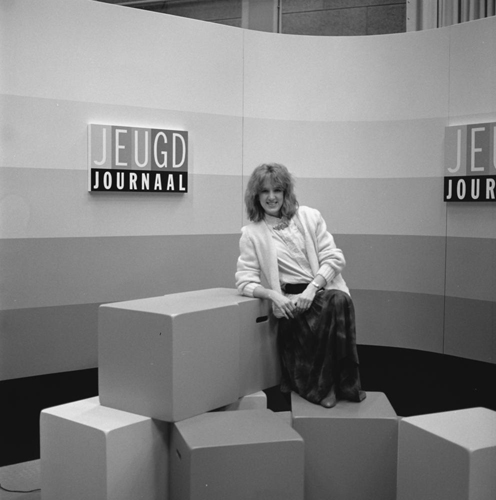 Leoni Jansen in decor Jeugdjournaal (1985 NOS) Archief Beeld en Geluid, catalogusnummer FTA001002076, foto nummer 4 (oud archiefnummer 85252)
