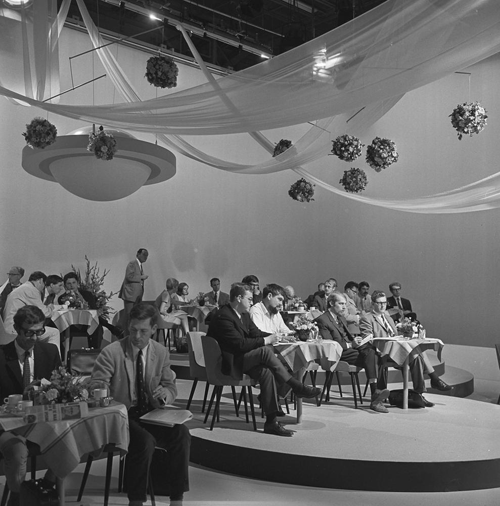 Persconferentie in TV studio Apollo-11 15 juli 1969 (NTS 1969). Archief Nederlands Instituut voor Beeld en Geluid. Catalogusnummer FTA001004755_001 (archief_bron 69443).