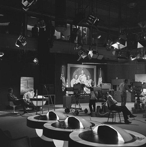 TV studio Apollo-11 uitzending (NTS 1969). Archief Nederlands Instituut voor Beeld en Geluid. Catalogusnummer FTA001004756_005 (archief_bron 69443).
