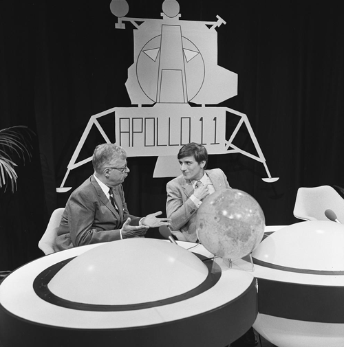 Deskundige met presentator Henk Terlingen , Apollo uitzending 20 juli 1969 (NTS 1969). Archief Nederlands Instituut voor Beeld en Geluid. Catalogusnummer FTA001004758_002 (archief_bron 69443).