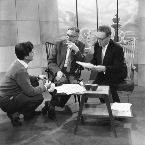 Joes Odufré, Max Euwe en M.M. Botwinnik in De taal van de machine. Uitzending 13 november 1958. Zendgemachtigde VPRO. Archief Beeld en Geluid. Catalogusnummer FTA001005124_002_con (archief_bron 58273, fotonummer 5).
