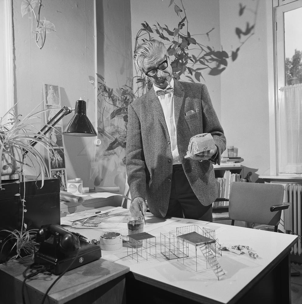 Portret van decorontwerper Jan P. Koenraads. Foto tbv tentoonstelling Open Beeld in 1967. Collectie Beeld en Geluid, oud-acrhief nummer 671080E