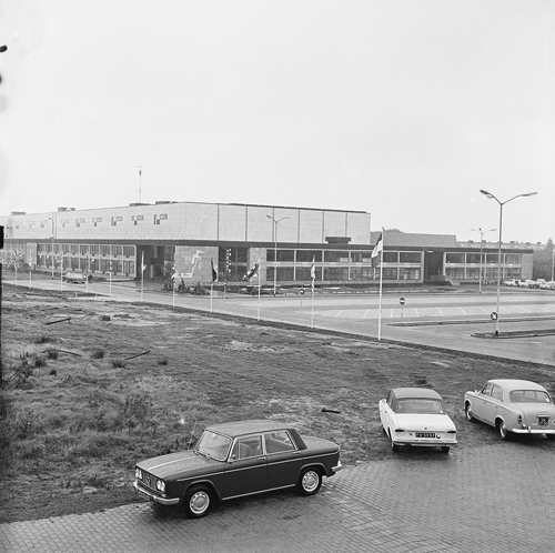 Overzicht Omroepkwartier, het Studiocomplex op 2 oktober 1967. NTS. Archief Beeld en Geluid, Archiefnummer FTA001009502, fotonummer 001. Oorspronkelijk archiefnummer 67401011.