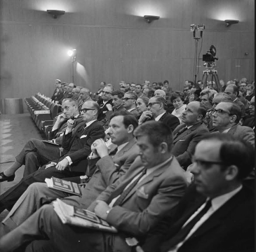 Foto van congres 'Grenzen en grendels' van Groep 73, 4-5-1968. Collectie Nederlands Instituut voor Beeld en Geluid