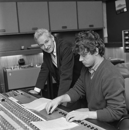 Medewerkers in de studio van de Wereldomroep aan de Witte Kruislaan 55 in Hilversum. 1982. Zendgemachtigde Wereldomroep. Archief Beeld en Geluid, catalogusnummer FTA001013275 fotonummer 003 (oorspronkelijk archiefnummer 8244).
