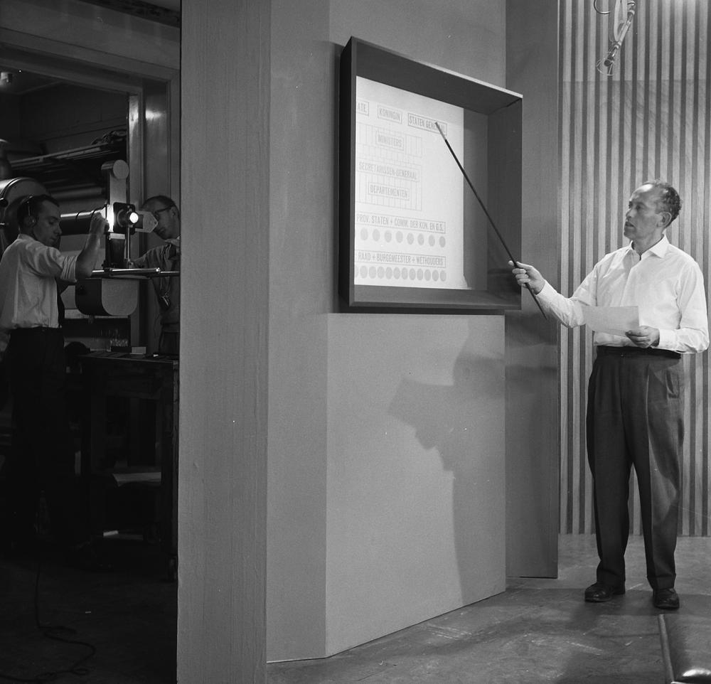 Lou de Jong presenteert De bezetting. Zendgemachtigde NTS, 1960. Archief Beeld en Geluid. Archiefnummer FTA001028649_005_con (oorspronkelijk archiefnummer 60241N).