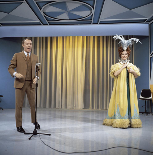 Wim Sonneveld en Ina van Faassen, KRO, 1969. Archief Beeld en Geluid, catalogusnummer FTA001048369, fotonummer 14 (oud archiefnummer 69217 D)