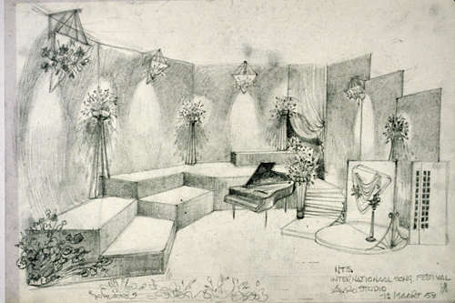 Decorschetsen van Fokke Duetz voor Eurovisie Songfestival 1958, 12-03-1958, NTS, Archief Beeld en Geluid, catalogusnummer FTA001056399, fotonummer 18 (oud archiefnummer 59333).