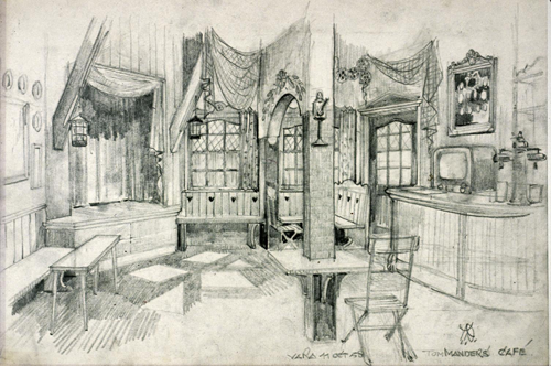 Decorschets van Fokke Duetz voor De avonturen van Dorus (Tom Manders café), 11-10-1958, VARA, Archief Beeld en Geluid, catalogusnummer FTA001056400, fotonummer 23 (oud archiefnummer 59333).