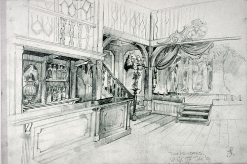 Decorschets van Fokke Duetz voor De avonturen van Dorus (Tom Manders café), 17-01-1959, VARA, Archief Beeld en Geluid, catalogusnummer FTA001056400, fotonummer 25 (oud archiefnummer 59333).