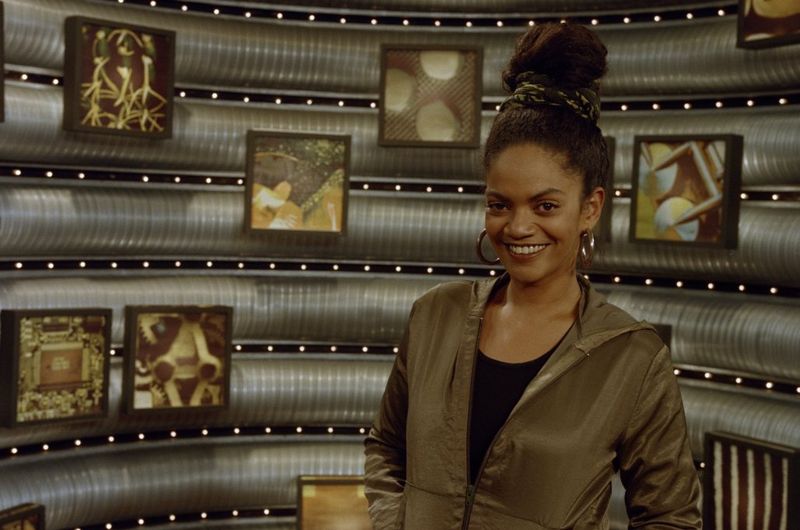 Aldith Hunkar in het decor van het Jeugdjournaal 1995. Fotocollectie Beeld en Geluid