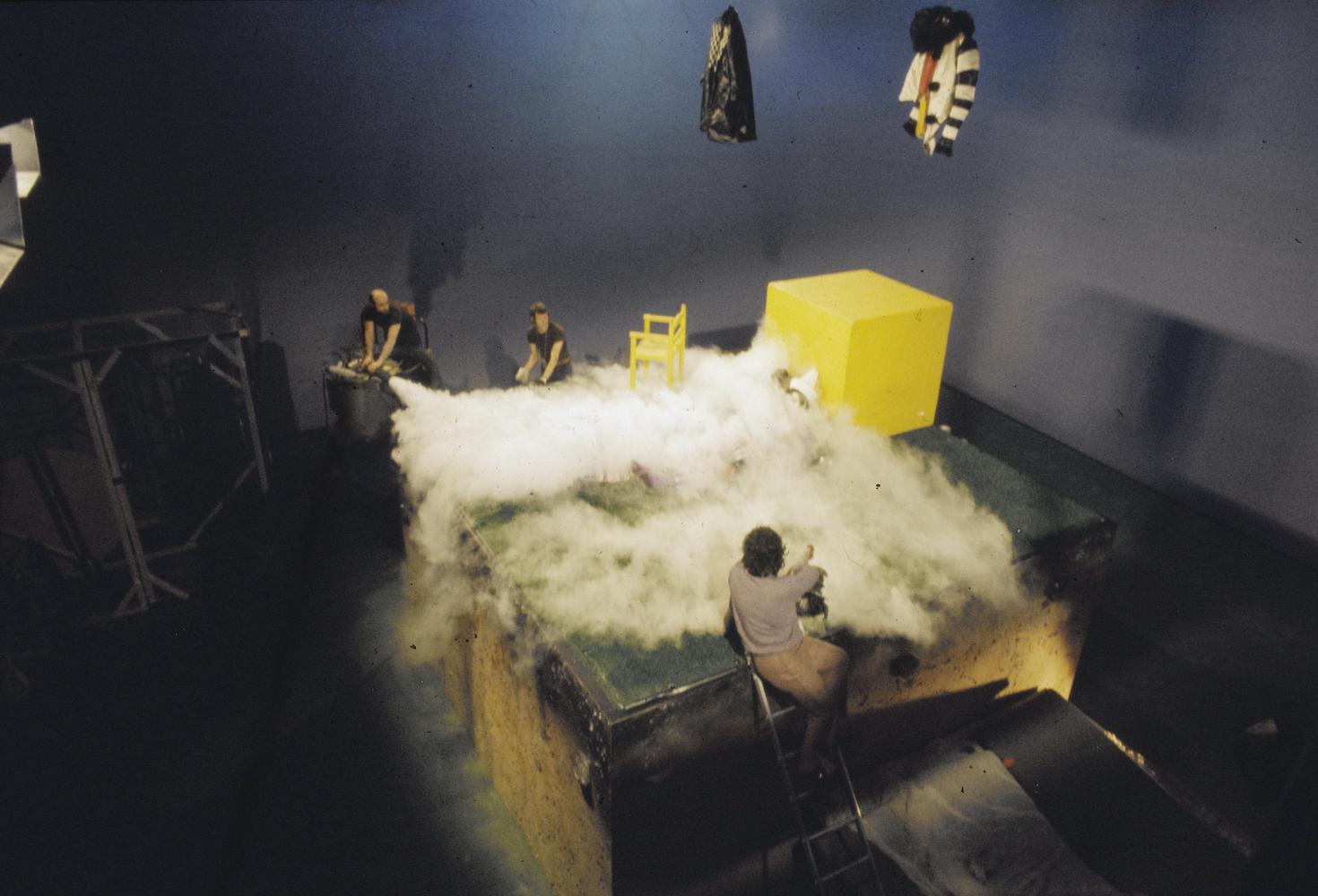Eigentijds Twee clowns en een kubus (NOS, 1973). Fotocollectie Beeld en Geluid, nummer FTA001181680_002