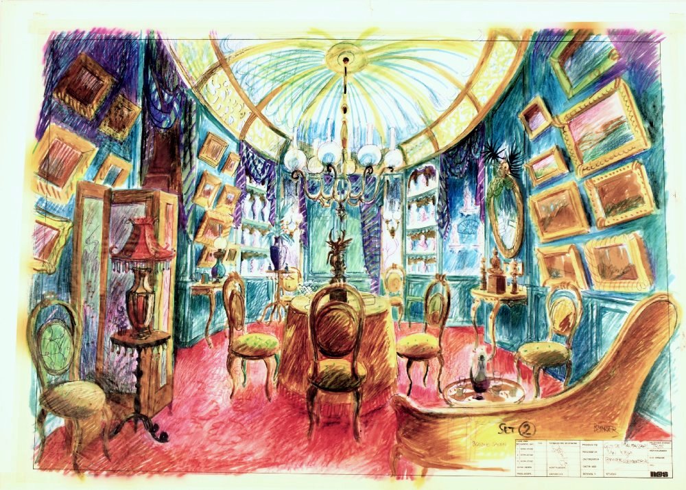Decortekening van Wim Bijmoer voor Uit de wereld van Guy de Maupassant (TROS, 1977). Collectie Beeld en Geluid, collectienummer LA2754