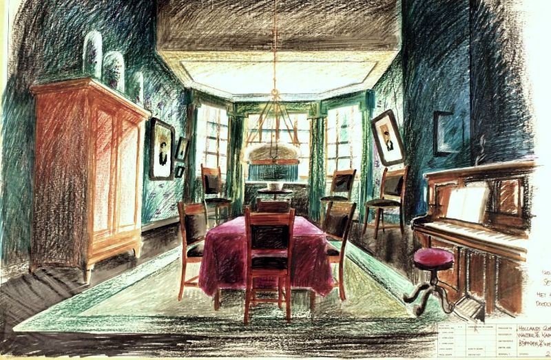 Decortekening van Wim Bijmoer voor Hollands glorie (dramaserie) (AVRO, 1977-1978). Collectie Beeld en Geluid, collectienummer LA2754