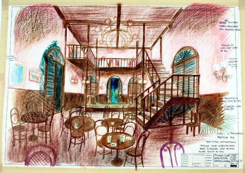 Decortekening van Wim Bijmoer voor Hollands glorie (dramaserie) (AVRO, 1977-1978). Collectie Beeld en Geluid, collectienummer LA2754