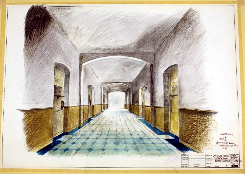 Decortekening van Wim Bijmoer voor Hollands glorie (dramaserie) (AVRO, 1977-1978). Collectie Beeld en Geluid, collectienummer LA2754