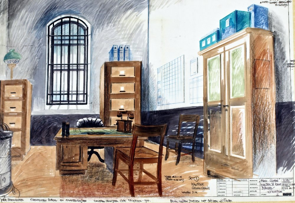 Decortekening van Wim Bijmoer voor Hollands glorie (dramaserie) (AVRO, 1977-1978). Collectie Beeld en Geluid, collectienummer LA2754