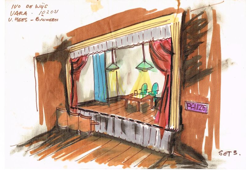Decorontwerp van Jaap Binnerts voor Kabaret Ivo de Wijs (VARA). Collectie Beeld en Geluid, collectie nummer LA2753, schenking van Anneke Hoog Antink