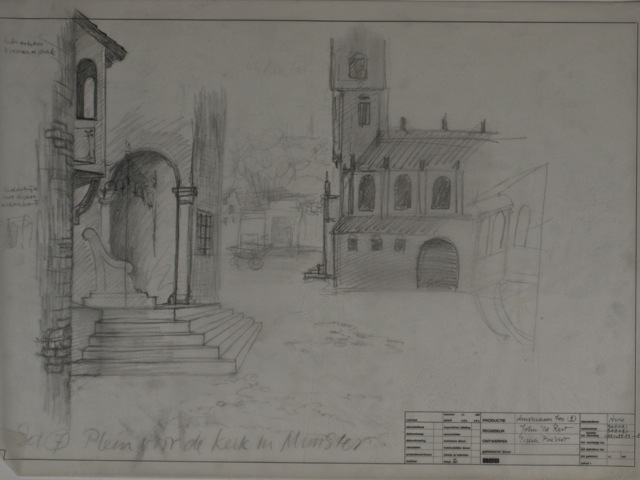 Decorontwerp van Freek Biesiot voor Een hemel op aarde (1975). Collectie Beeld en Geluid, archiefnummer LA1225-2-138_014