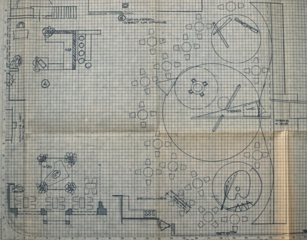 Plattegrond van [[Freek Biesiot voor decor Barend is weer bezig (1972-1973). Archiefnummer LA1225-2-46, collectie Beeld en Geluid