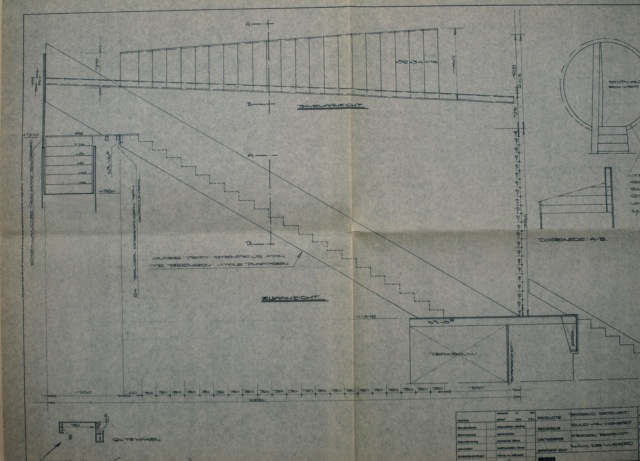 Detailtekening van Freek Biesiot voor decor Barend is weer bezig (1972-1973). Archiefnummer LA1225-2-46, collectie Beeld en Geluid