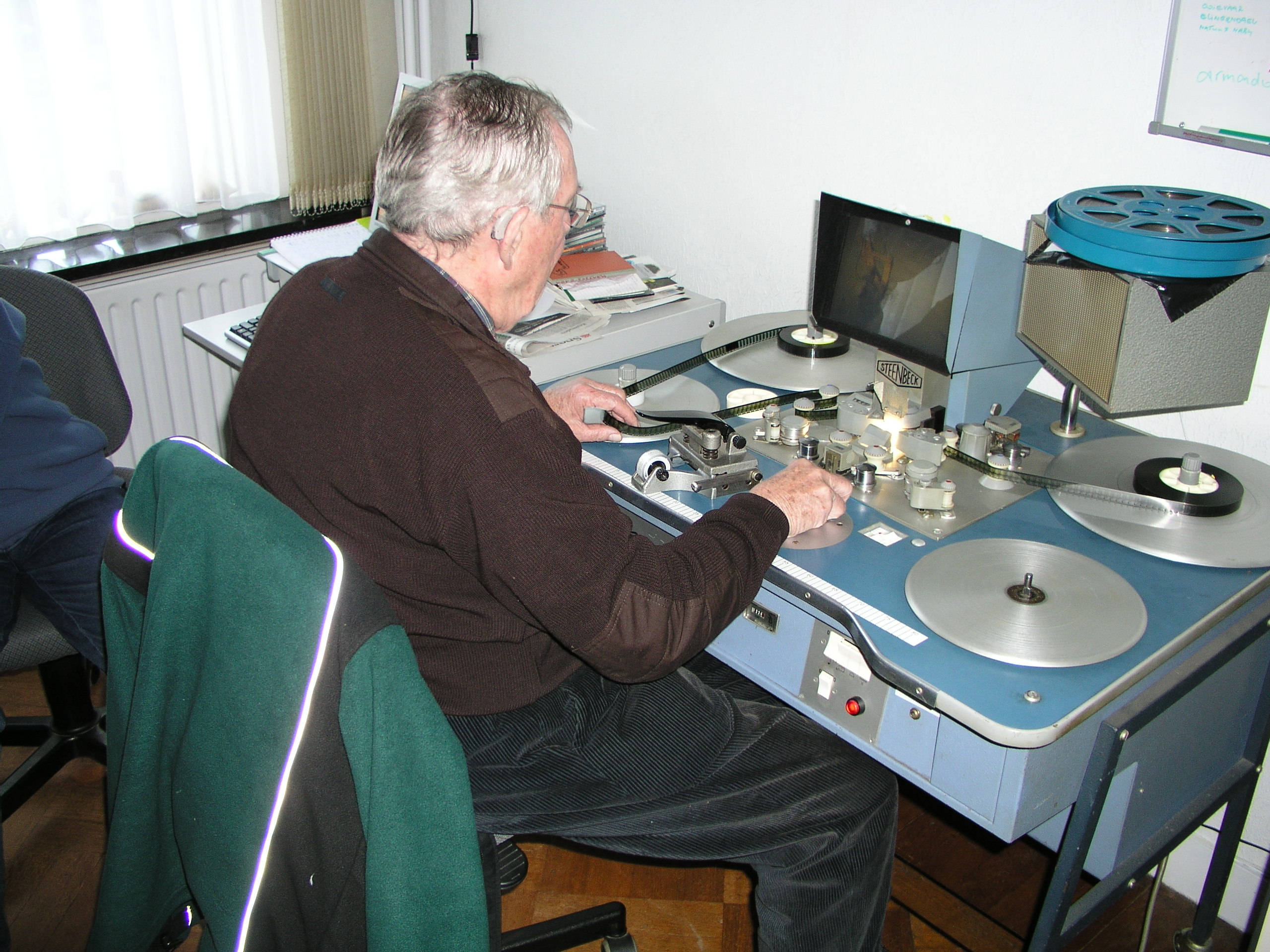 Jan van den Ende is aan het monteren. Copyright foto: Monique van den Broek (privé collectie). Valt niet onder de cc-licentie.