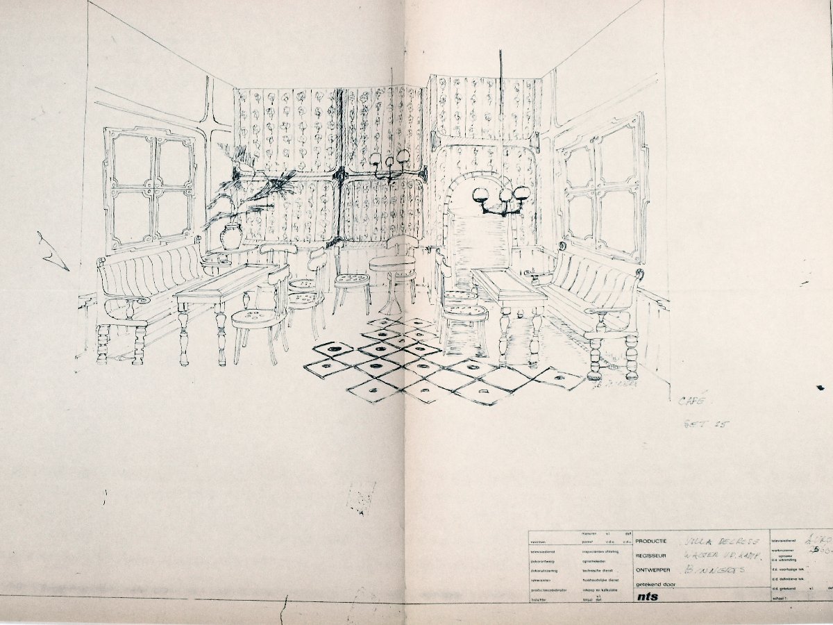 Decorontwerp van Jaap Binnerts voor Villa des Roses (AVRO, 1968). Collectie Beeld en Geluid, collectie nummer LA2753, schenking van Anneke Hoog Antink