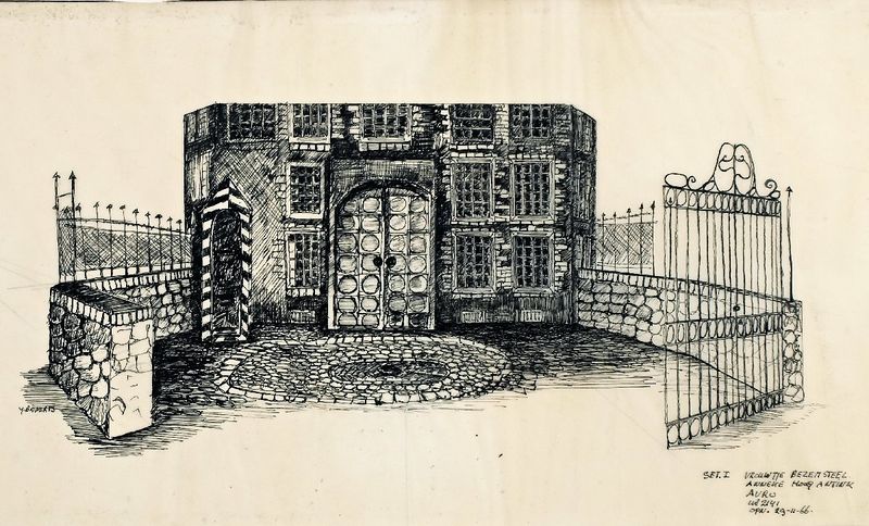 Decorontwerp van Jaap Binnerts voor Vrouwtje Bezemsteel (AVRO, 1966). Collectie Beeld en Geluid, collectie nummer LA2753, schenking van Anneke Hoog Antink