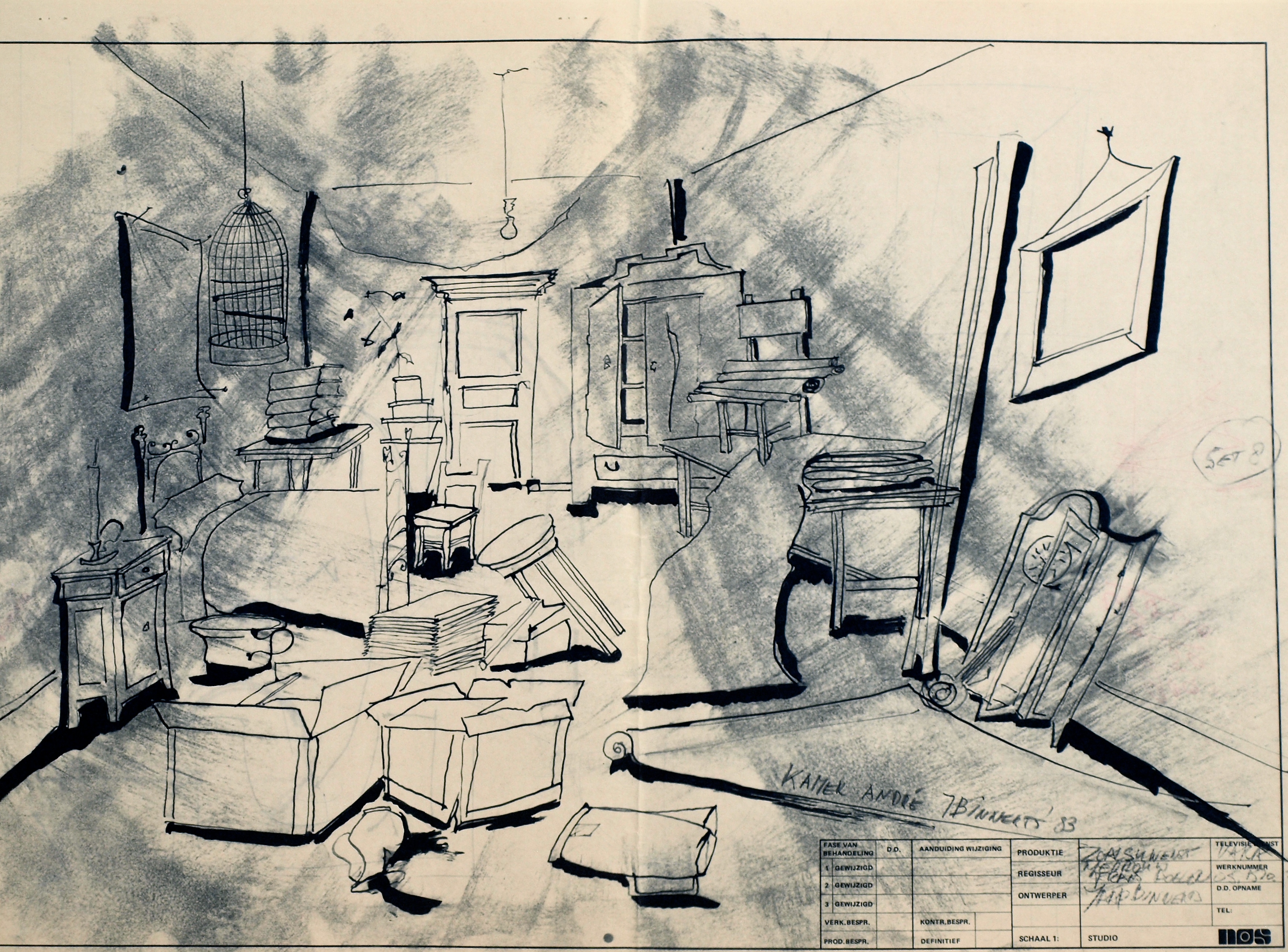 Decorontwerp van Jaap Binnerts voor Zoals u wenst mevrouw (VARA, 1984). Collectie Beeld en Geluid, collectie nummer LA2753, schenking van Anneke Hoog Antink