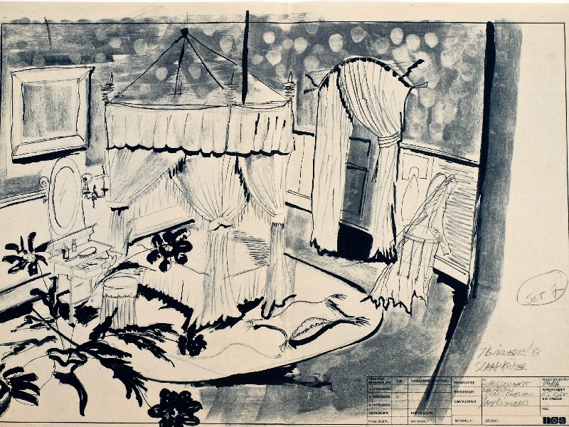 Decorontwerp van Jaap Binnerts voor Zoals u wenst mevrouw (VARA, 1984). Collectie Beeld en Geluid, collectie nummer LA2753, schenking van Anneke Hoog Antink