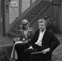Foto's geschoten op de set tijdens de opnames op 15 oktober 1976. Te zien zijn o.a. André van Duin, Allard van der Scheer, Corrie van Gorp.