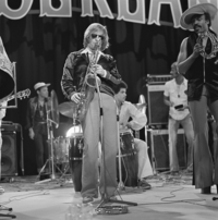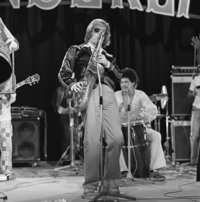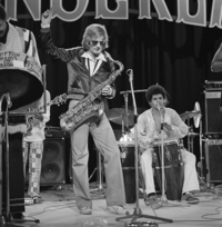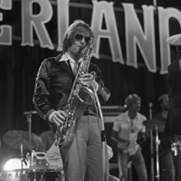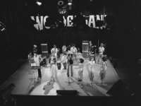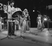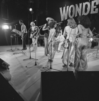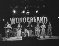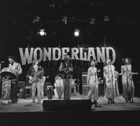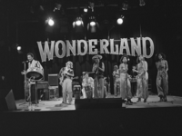 Foto's genomen op de set van Wonderland, op 12 mei 1977. De optredende band is Hans Dulfer & de Perikels.